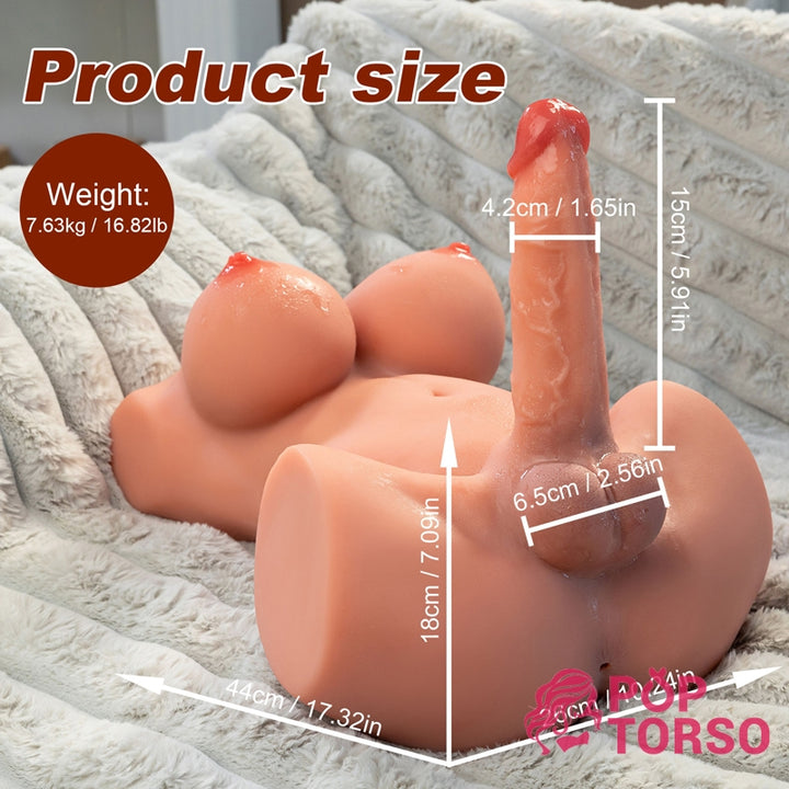 16.82LB Mag Xise TPE Shemale Torso Sex Doll with Realistic 5.9″ Thrusting Dildo [USA STOCK]
